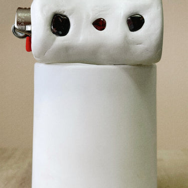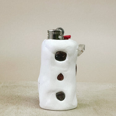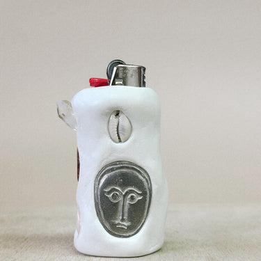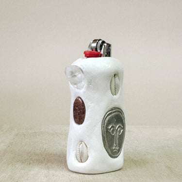 This altar lighter carries her tempestuous power through amethyst for spiritual sight, an amethyst point for focus and higher wisdom, garnet for passion and courage, a cowrie shell for protection and wealth, and a silver folk face symbolizing Oyá’s presence as both storm and guide.